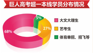 - 大文大理:董楠、邱凡雨、张瑞等274人过一本线,单科提?4?2分?br /> 艺考:杨梅、梁宇等107人过一本线,单科提?0?1分?br /> 艺考实验班:平均每4名艺考生就有3名超一本线,总分提分80?42分?br /> 体育单招、招飞等:朱子强?0余名学员分数远超去年分数线,有望全部进入重点大学?