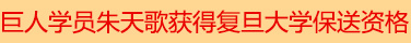 武汉巨人学校徐东校区朱天歌同学获得复旦大学科学实验班保送资?/p>