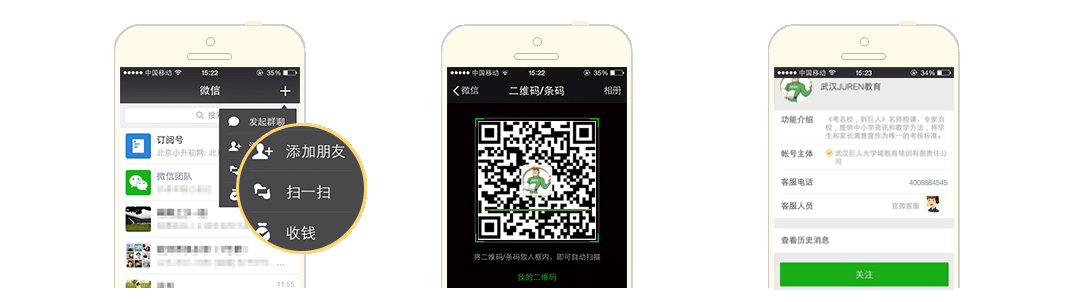 1.打开微信“扫一扫”功能 2.扫描下方二维码 3.关注公众号