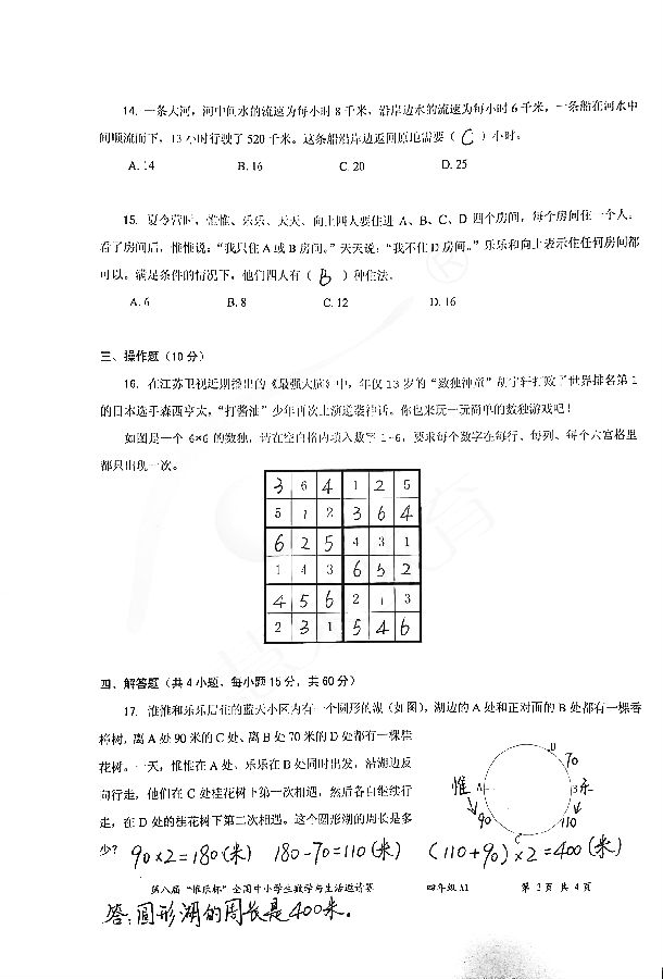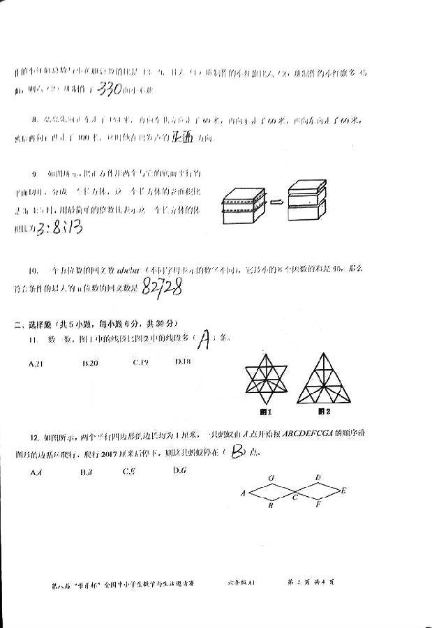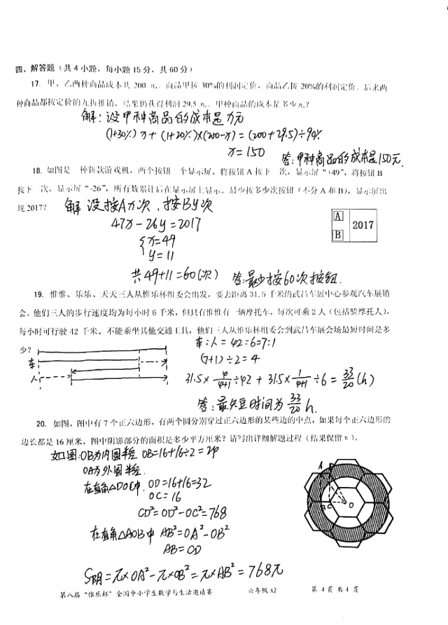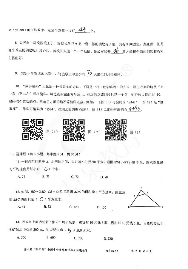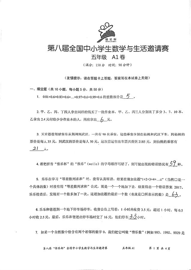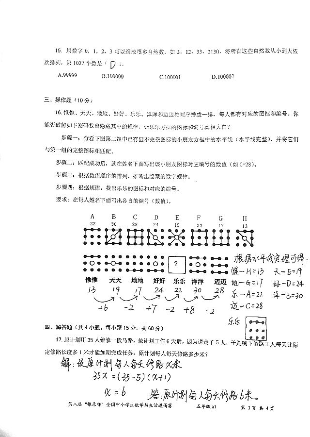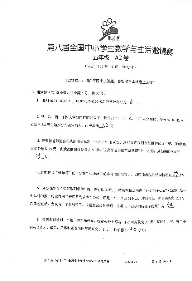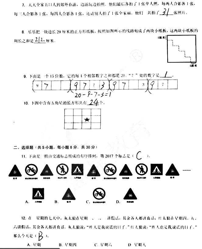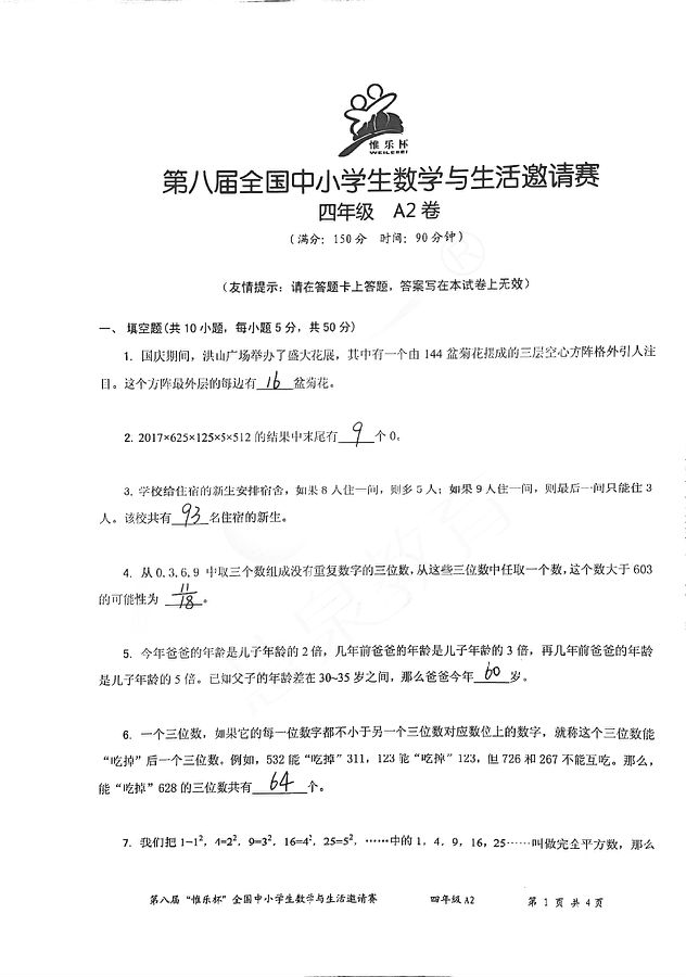 2017年惟乐杯试卷及答案解析(3-6年级)