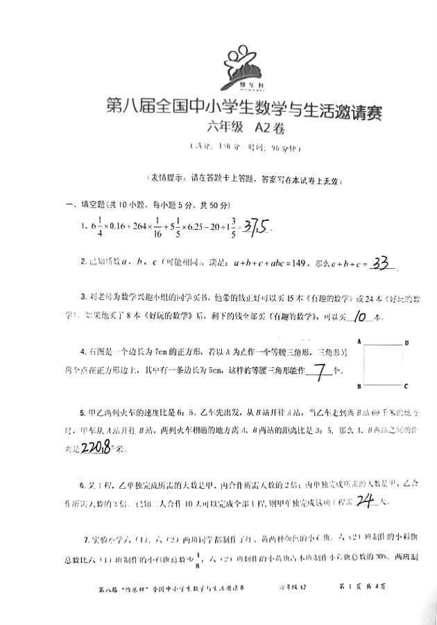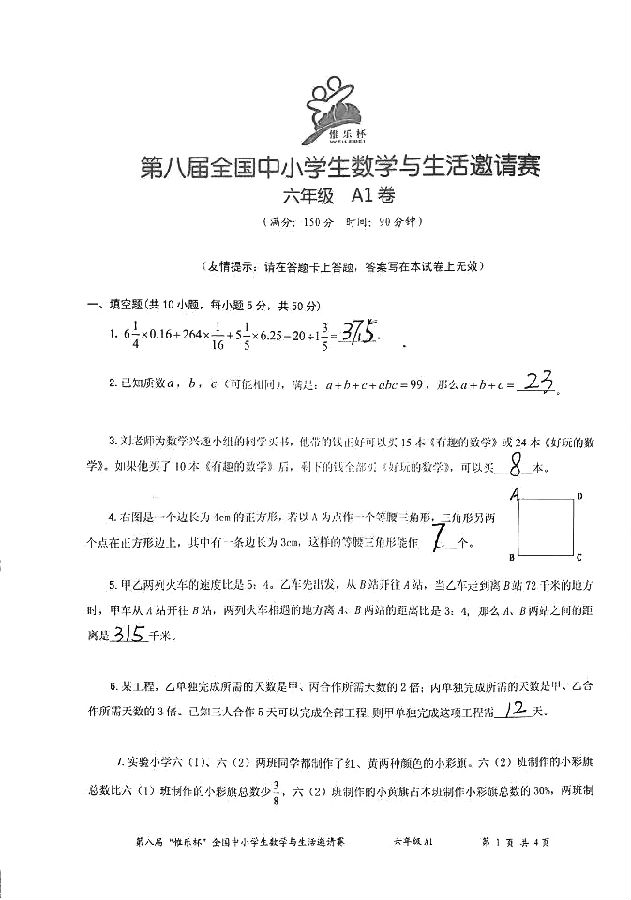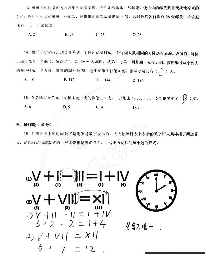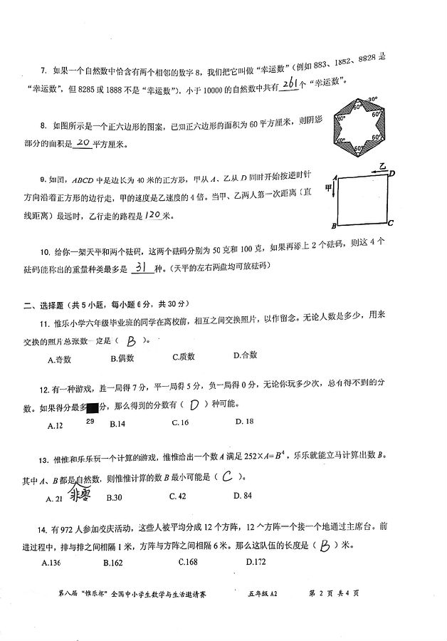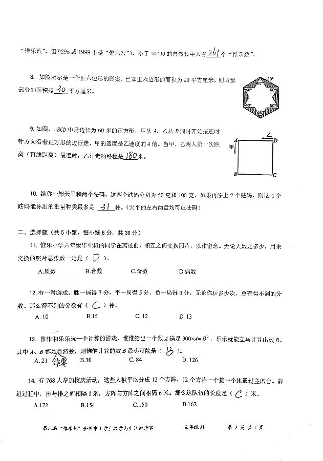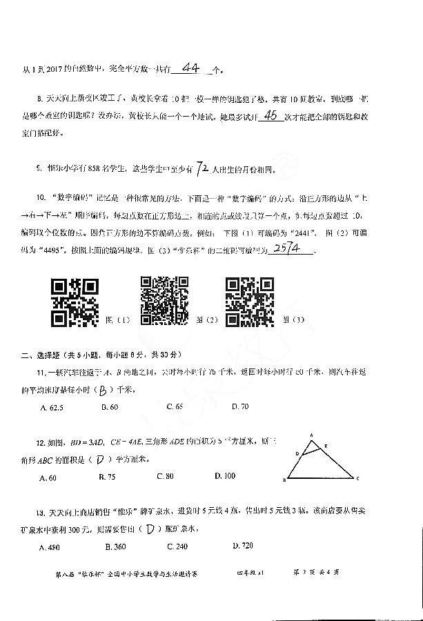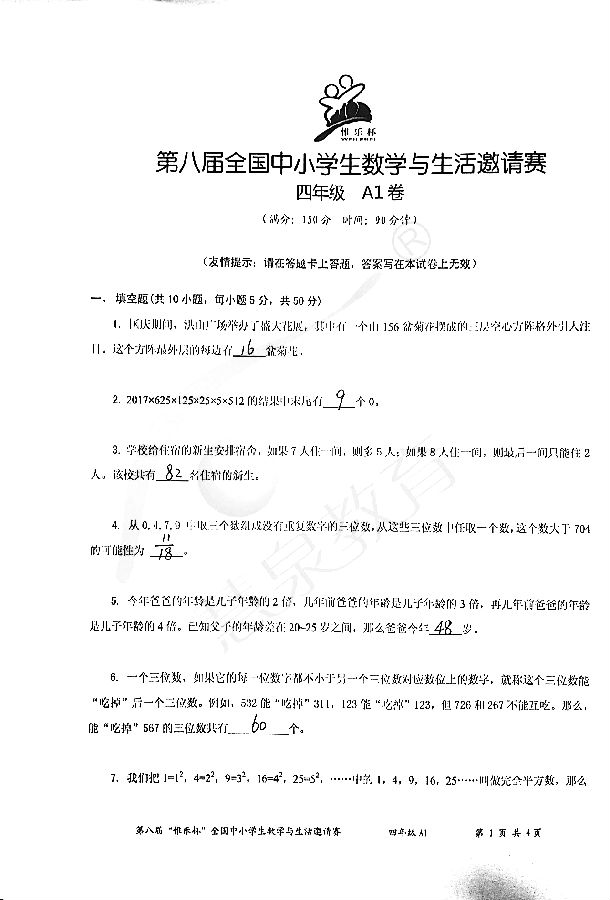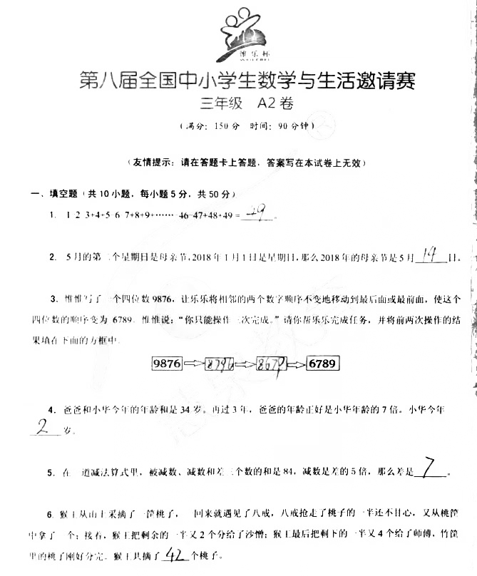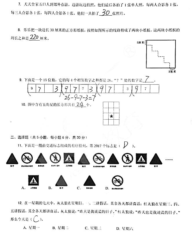 2017年惟乐杯试卷及答案解析(3-6年级)