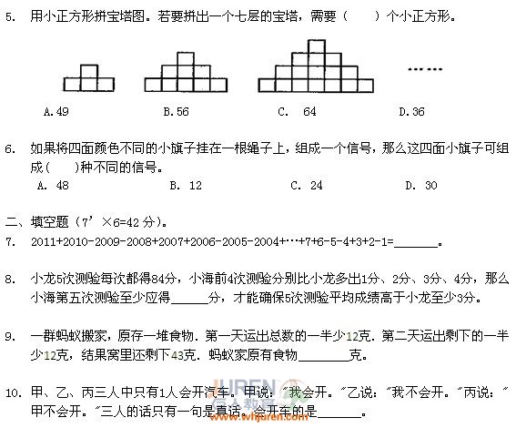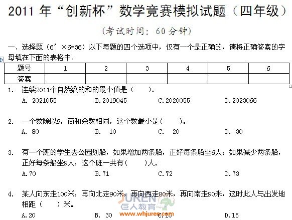 导语:武汉巨人教育为大家搜罗了2011年“创新杯”数学竞赛模拟试题(四年级)