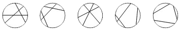 【分析】我们来一条一条地画直线.画第一条直线将圆形纸片划分成2块.画第二条直线,如果与第一条直线在圆内相交,则将圆形纸片划分成4块(增加了2块),否则只能划分成3块.类似地,画第三条直线,如果与前两条直线都在圆内相交,且交点互不相同(即没有3条直线交于一点),则将圆形纸片划分成7块(增加了3块),否则划分的块数少于7块.下图是画3条直线的各种情形