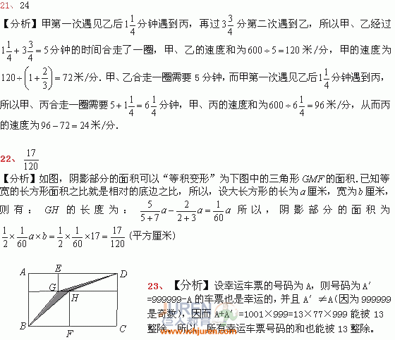 2011年“创新杯”数学竞赛模拟试题(六年级)答案