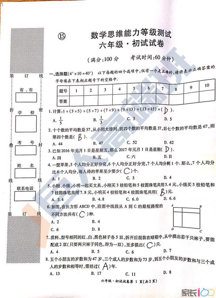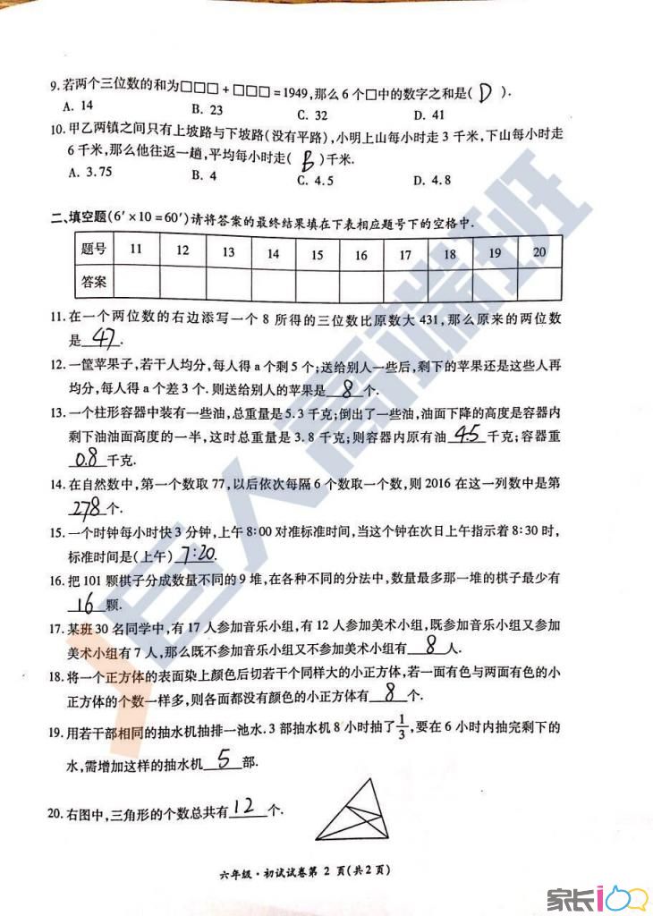 【2017创新杯初赛六年级】答案解析新鲜出炉!