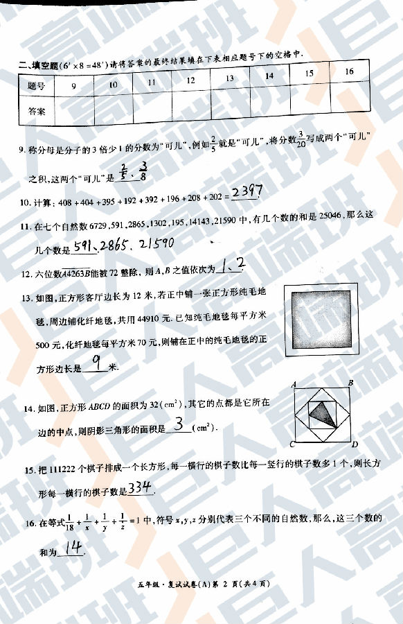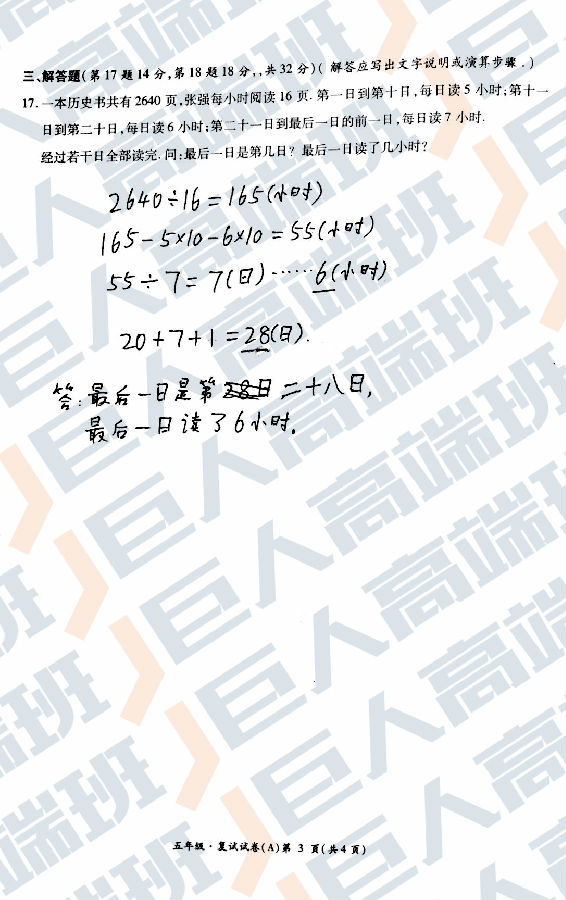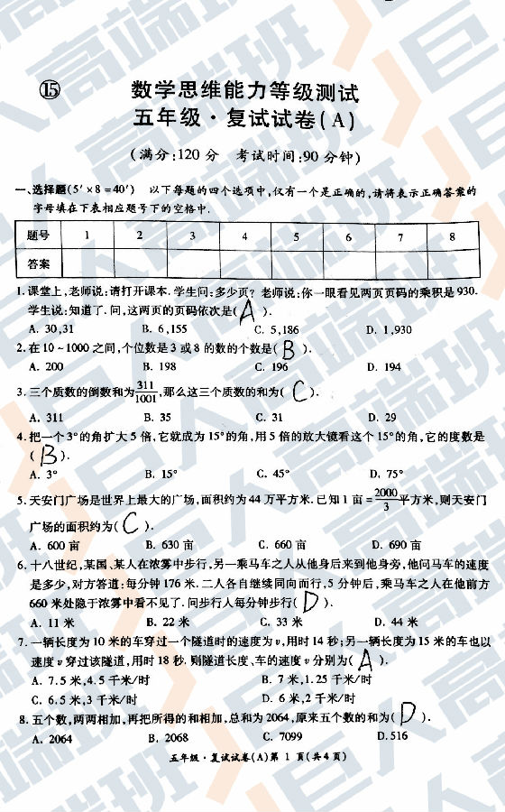 2017年五年级创新杯决赛A卷真题及标准答案(附往年获奖分数线、获奖比例)