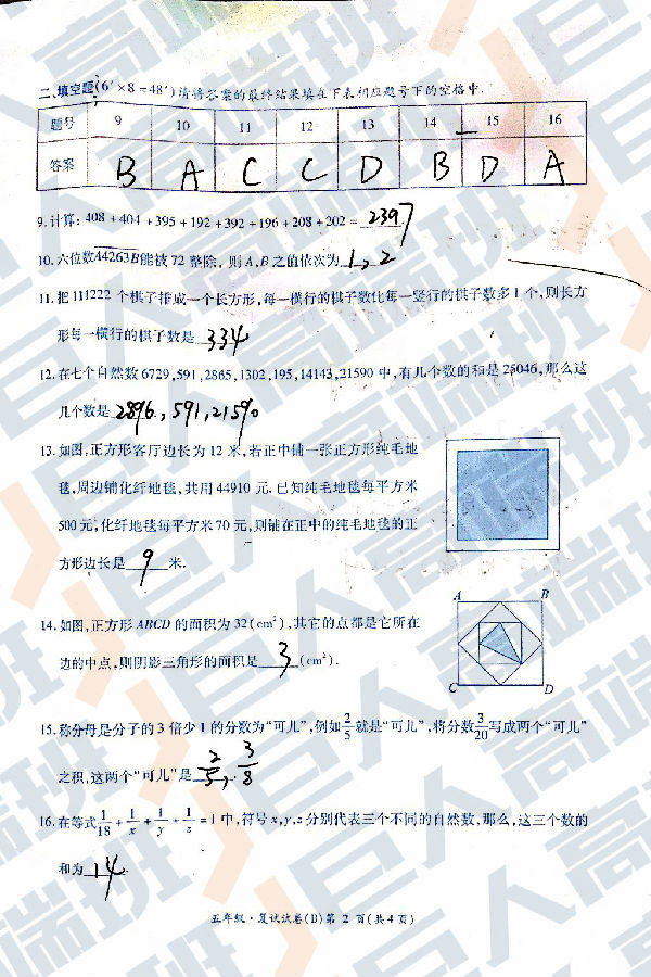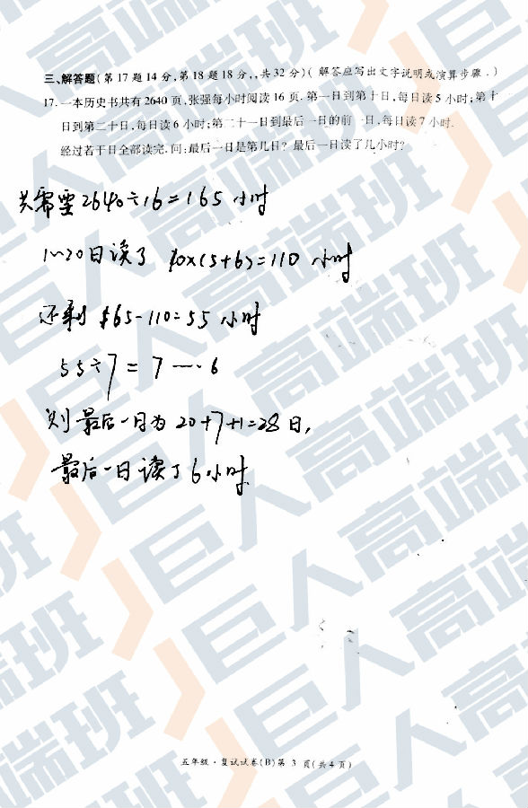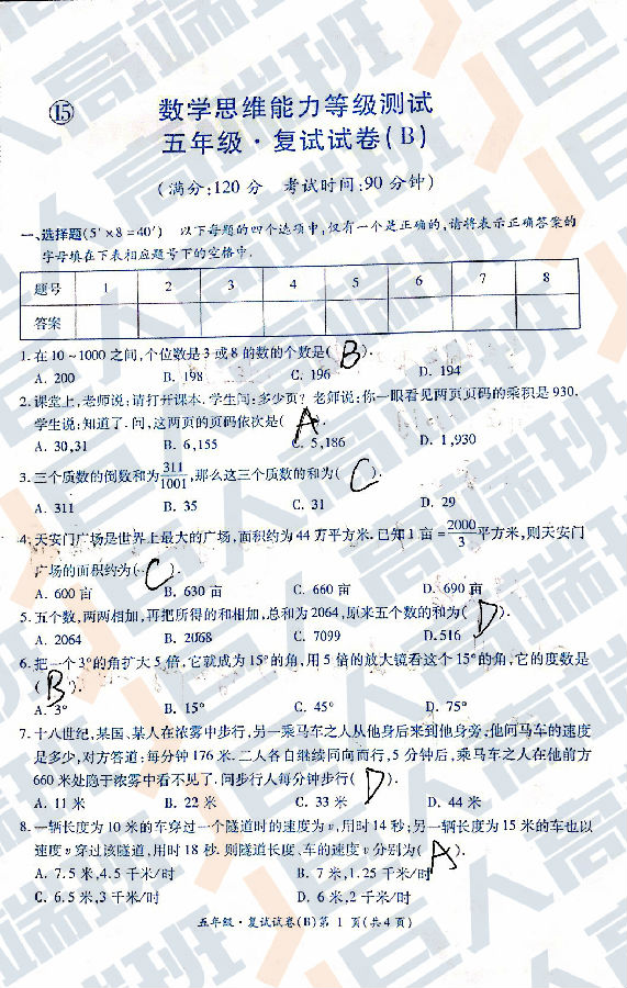 2017年五年级创新杯决赛B卷真题及标准答案(附往年获奖分数线、获奖比例)