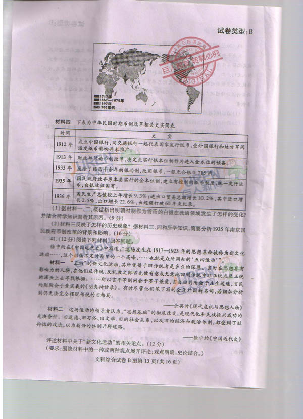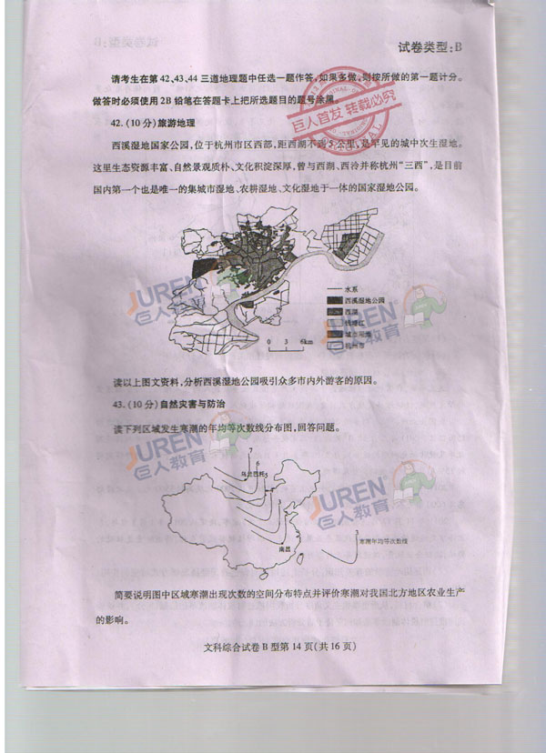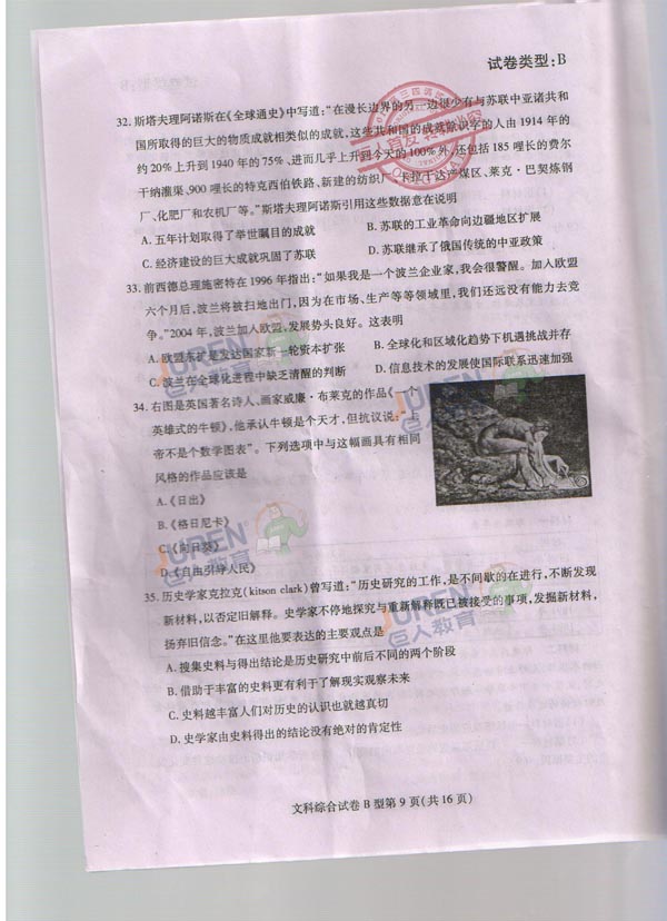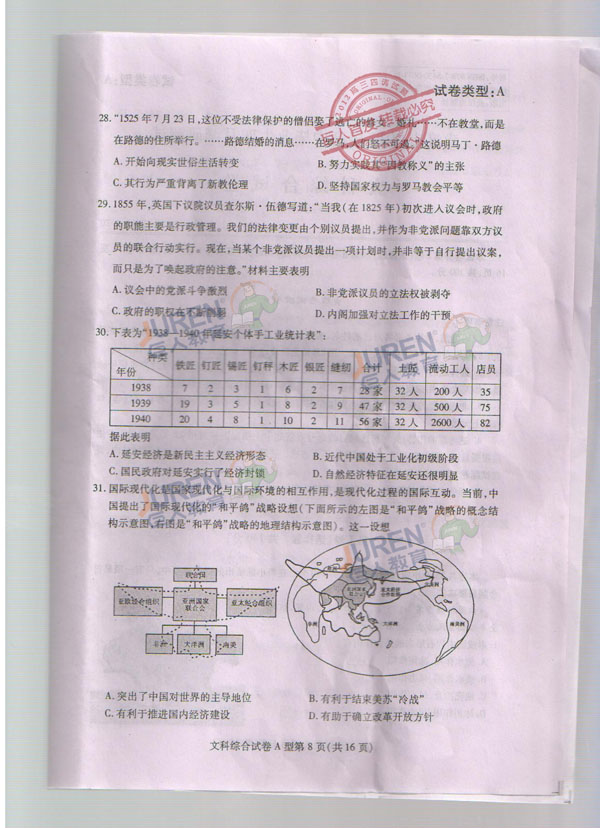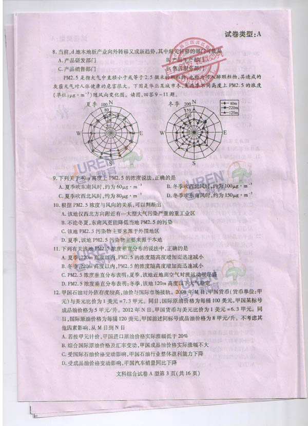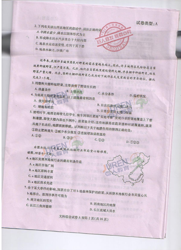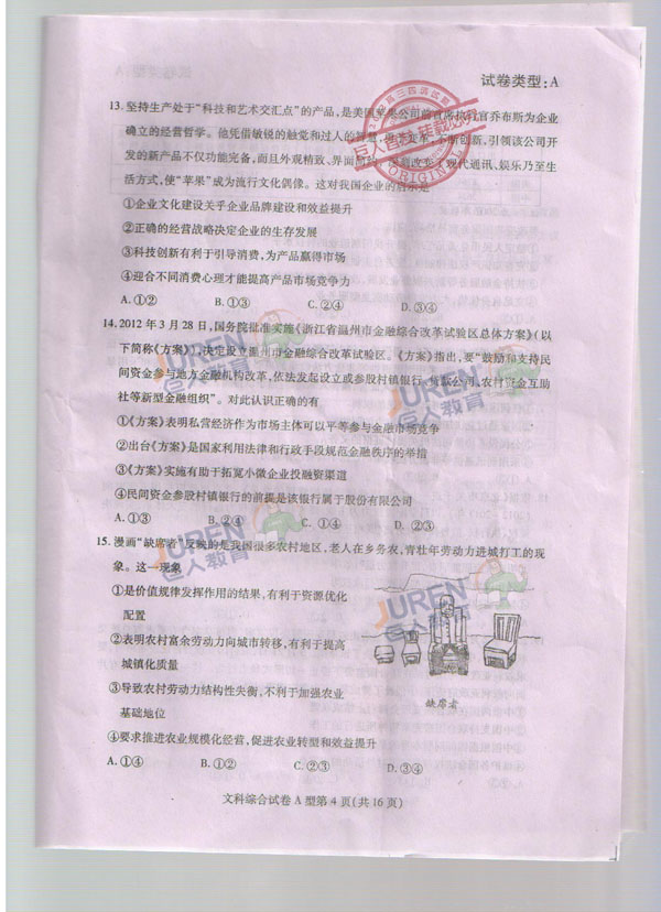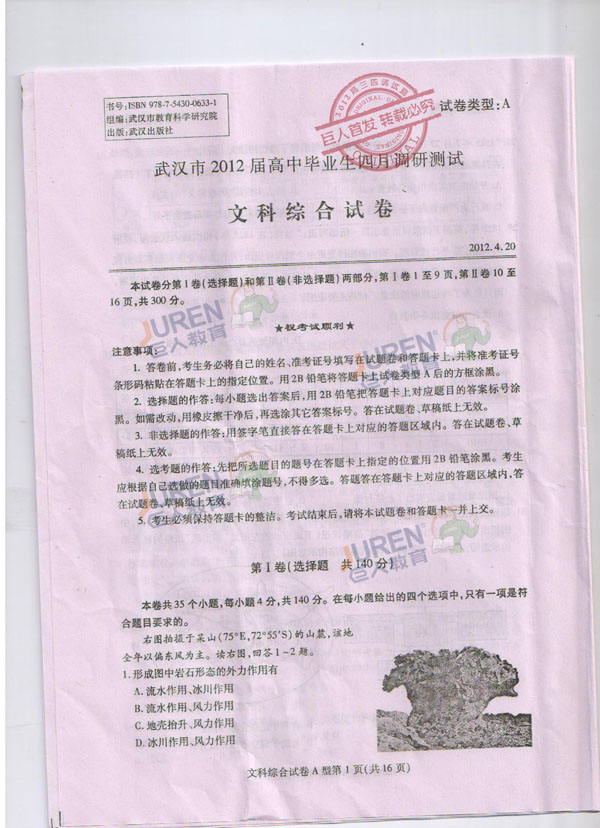 巨人独家:2012武汉高三四月调考文科综合试卷