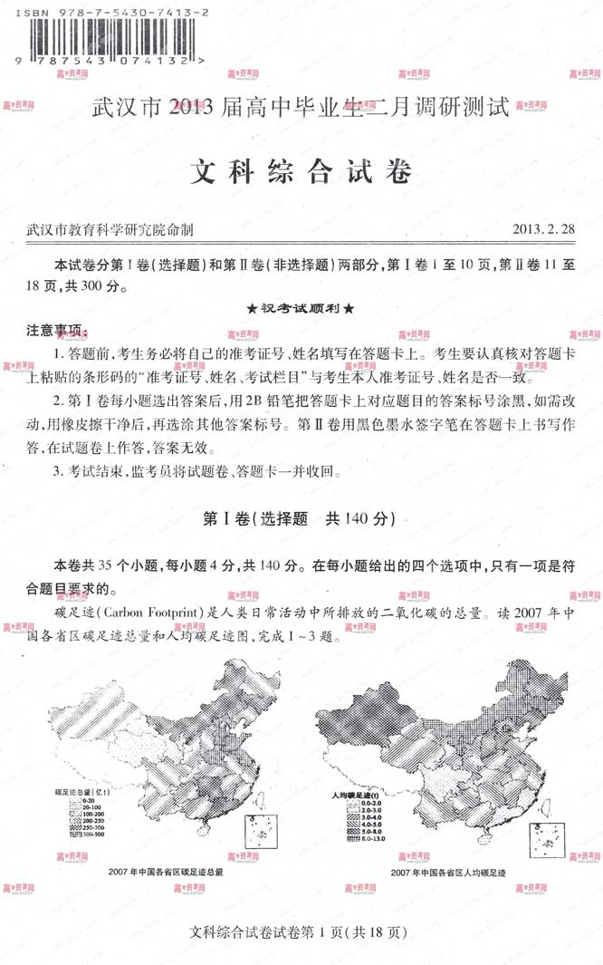导读:2013年武汉市高三二月调考已经告一段落,在寒假短暂的调整后,二月调考可以说是一次高考前的练兵,也是新学期制定学习计划的参考,下面我们就来看看武汉市高三二月调考文综真题试卷: