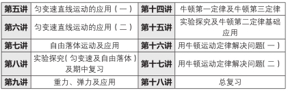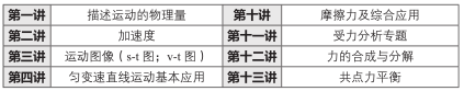 教学内容以必修一课程内容为主。其中“运动的描述”、“匀变速直线运动”及“相互作用”三板块为高中物理的基础和重点板块。