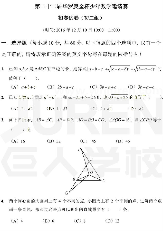 相关阅读:2016年第22届“华杯赛”初赛初二年级组笔试试题答案