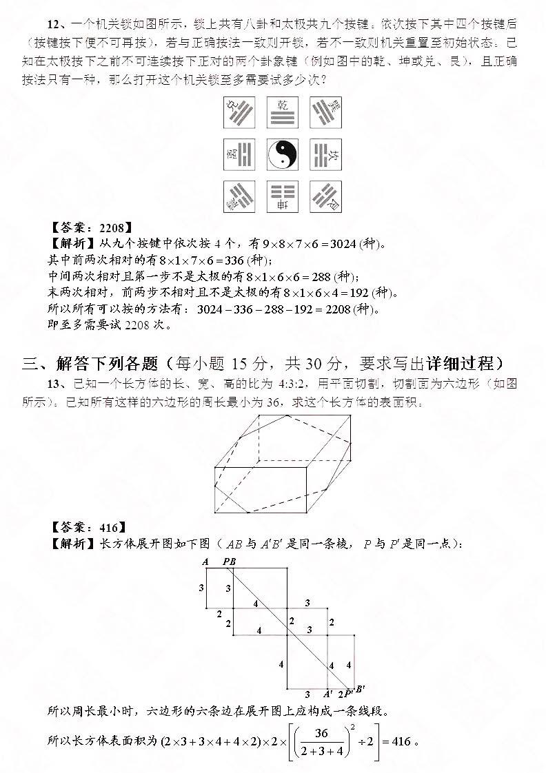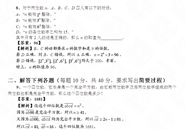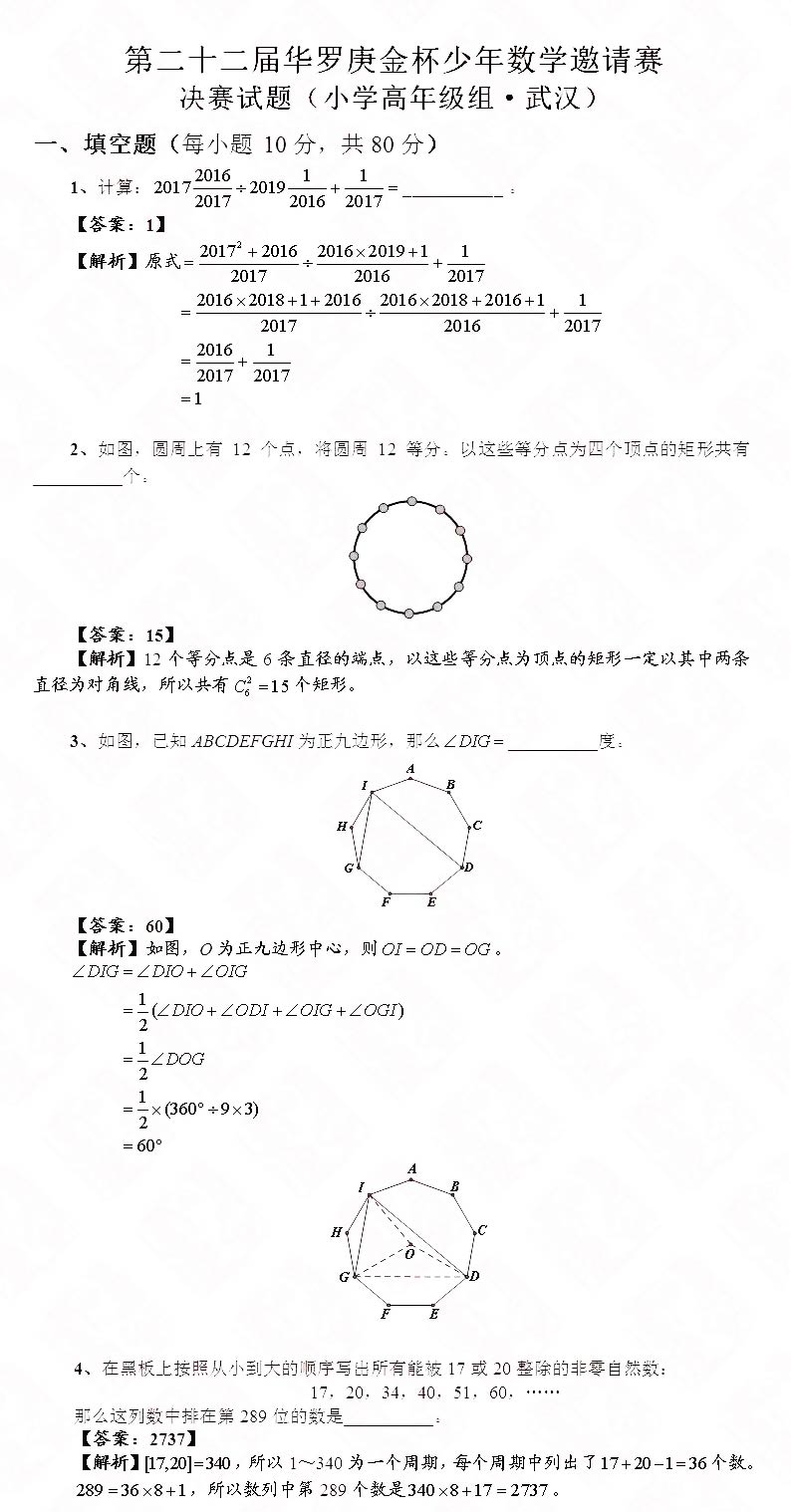 2017年华杯赛(武汉)小高组决赛试卷及详细答案解析
