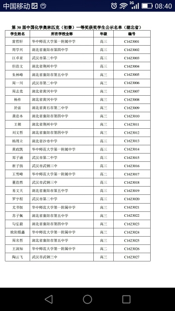 30届中国化学奥林匹克(初赛)获一等奖学生名单公示第30届中国化学奥林匹克(初赛)已结束,现将获一等奖学生名单进行公示,接受社会监督。