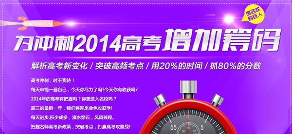 巨人学习小助手温馨提示:巨人教育现针对2014届高考生开设了高考提分班,助大家在明年高考中进入理想大学。<巨人一对一特色辅导课程>全面衔接提升学习方案。点击在线咨询按钮或者免费拨打我们的咨询热线:400-888-4545,与我们的老师进行一对一交流,我们会给你专业的解答和建议!