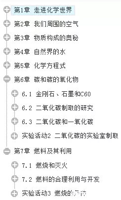 九年级化学上册的正本教材第1章走进化学世界至第7章燃料及其利用,但校内会上课上到下册的金属。具体如下图: