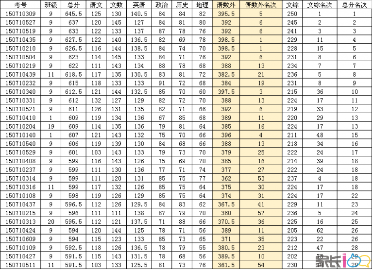 (文科年级前30)