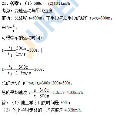 21.(1)500s (2)4.32km/h