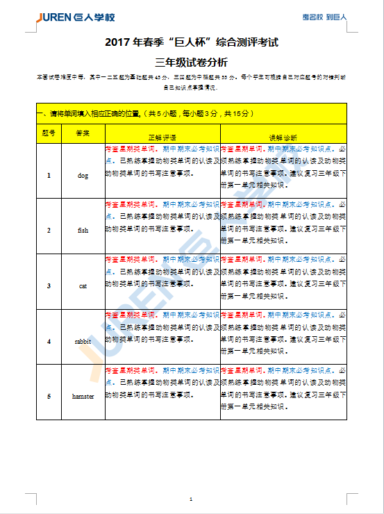 全网首发!第十三届巨人杯综测三年级英语试卷解析!