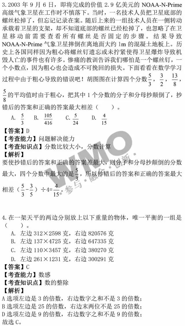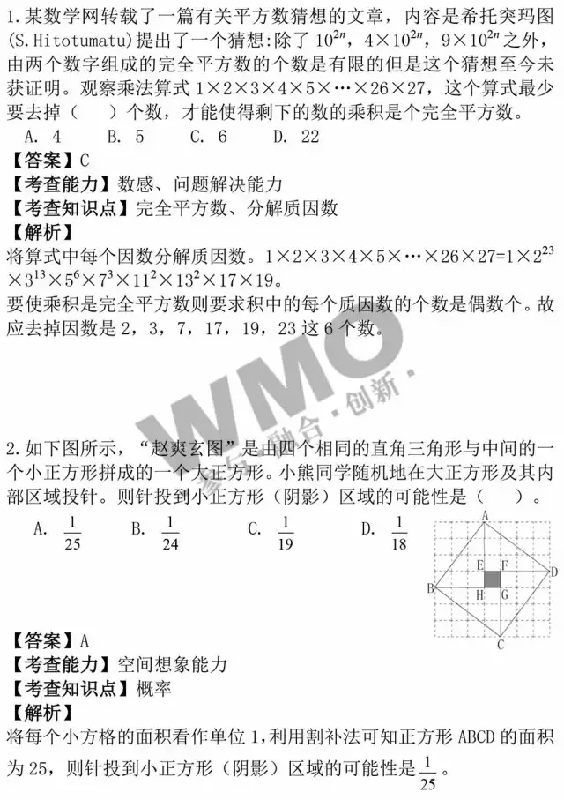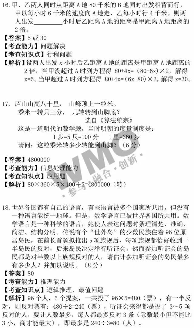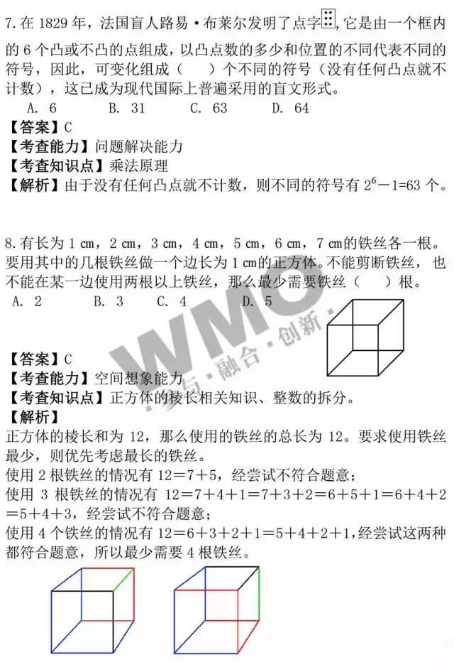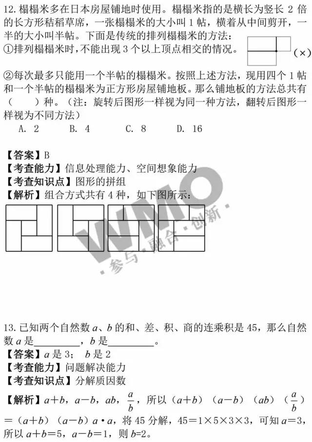 2016年武汉世奥赛将于3.13日(周日)进行,其中六年级考试时间为上午08:30—10:00,五年级考试时间为上午11:00— 12:30,三年级/四年级/初中考试时间均为下午14:00—15:30,下面小编分享此次试题及真题解析,大家可以对下答案,提前知道自己的成绩,预 祝所有同学都可以考出理想结果。