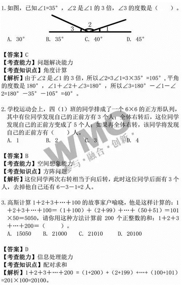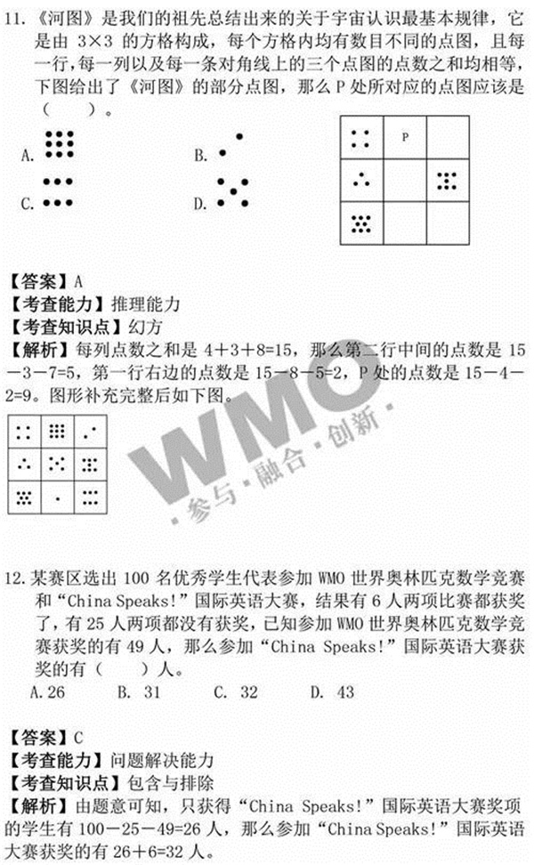 2016年武汉世奥赛将于3.13日(周日)进行,其中六年级考试时间为上午08:30—10:00,五年级考试时间为上午11:00— 12:30,三年级/四年级/初中考试时间均为下午14:00—15:30,下面b365官网分享此次试题及真题解析,大家可以对下答案,提前知道自己的成绩,预 祝所有同学都可以考出理想结果。