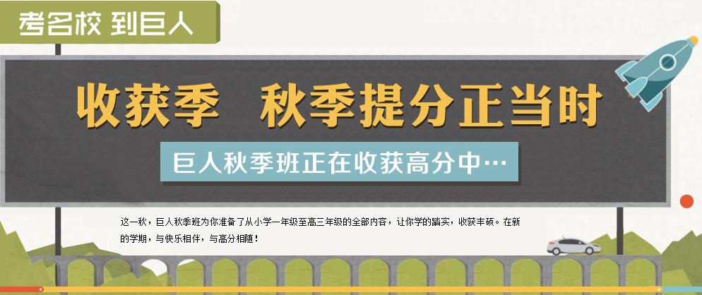 巨人学习小助手温馨提示:巨人教育现针对各年级同学开设了秋季提分班,助大家在新学年取得好成绩。<<<>巨人一对一特色辅导课程>全面衔接提升学习方案。点击在线咨询按钮或者免费拨打我们的咨询热线:400-888-4545,与我们的老师进行一对一交流,我们会给你专业的解答和建议!