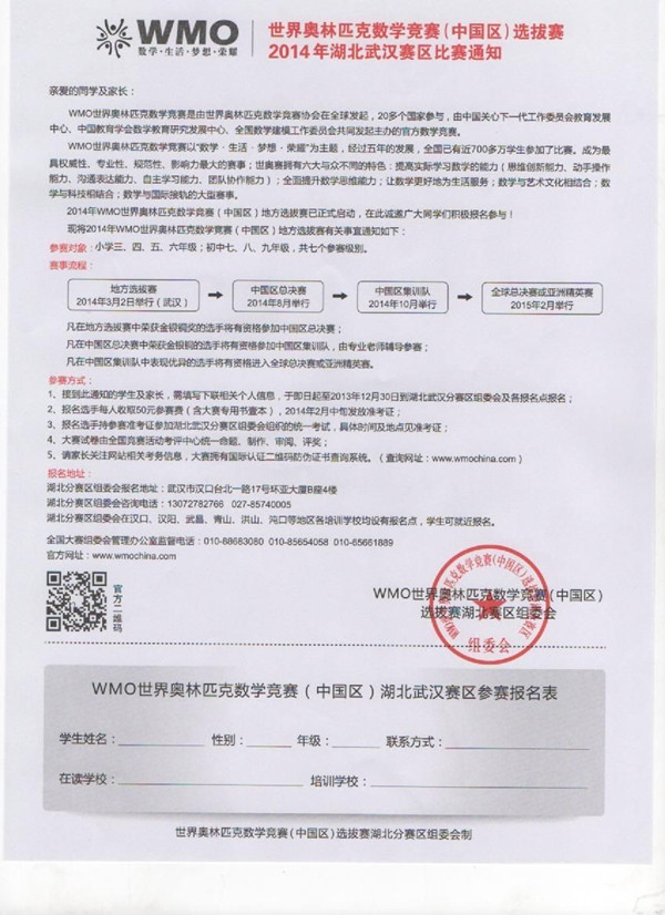 2014年世奥赛湖北武汉赛区比赛通知
