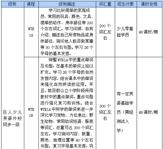 巨人少儿英语外校同步系列所采用的教材是朗文公司根据香港2004年小学课程指导编写的最新小学教材,同时也是武汉实验外国语学校小学部所用教材,本书结合了朗文在香港二十多年的英语教材编写经验和最新的教学方法,加入了Phonics等多种新的教学元素。教材中各主题主要结构和词汇在真实而有趣的内容中呈现,突出语法点,便于自主学习和查阅,鼓励学生用英语交流和分享。该课程最大特点就是大量采用各种文体,如戏剧、故事、说明书、传记、诗歌等,来拓宽学生的阅读范围,严谨多样的教学,高强标准的要求和反复强化的训练,让学生的英语得到快速飞越的提高。