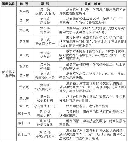 (2)课程形式多样、有趣:剪纸、实物观察、看图、游戏,并在活动中积累感悟,注重写作方法和技巧的指导,强化写作技能。