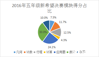 今年的五年级决赛,重点在于数论和应用题模块,占比分别达到了30%和24.2%。数论的知识点考试,历来是五年级各大杯赛考察的重点,同学们在备考的时候一定要注意,今年考察的奇偶、质合因倍、整除,都是我们平时训练的重点,所以难度应该不算大。而其余模块基本上是平均分布,平时的备考要注意全方位的训练。