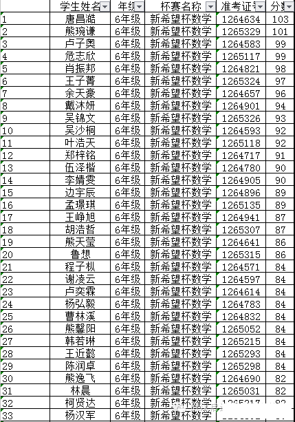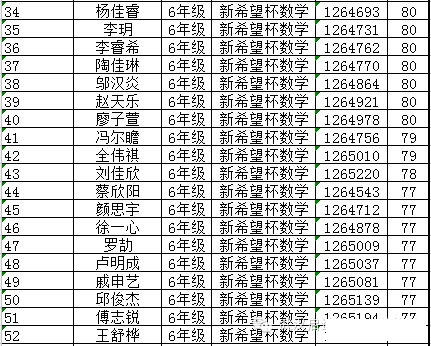 武汉小学新希望杯六年级分数线出来了!大家都过了初赛吗?下面是巨人的晋级名单,过线的孩子继续努力,没过线的孩子也不要气馁,继续加油!
