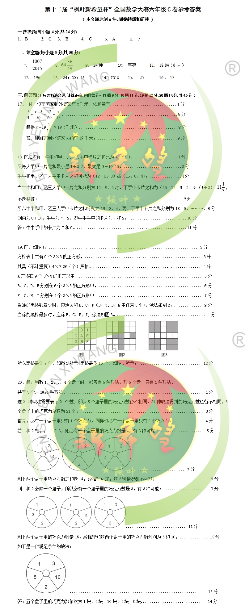 第十二届“枫叶新希望杯”全国数学大赛六年级 (C卷) 答案
