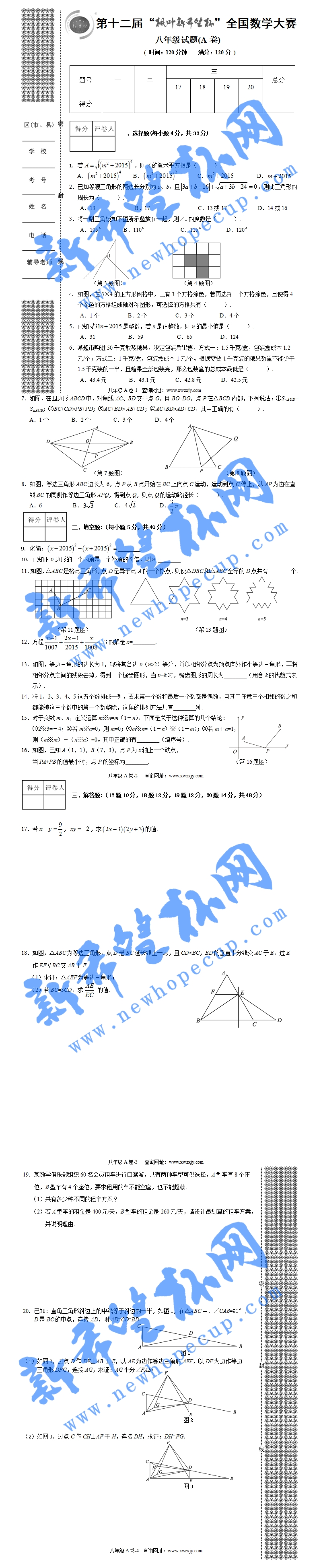 第十二届“枫叶新希望杯”全国数学大赛八年级 A卷
