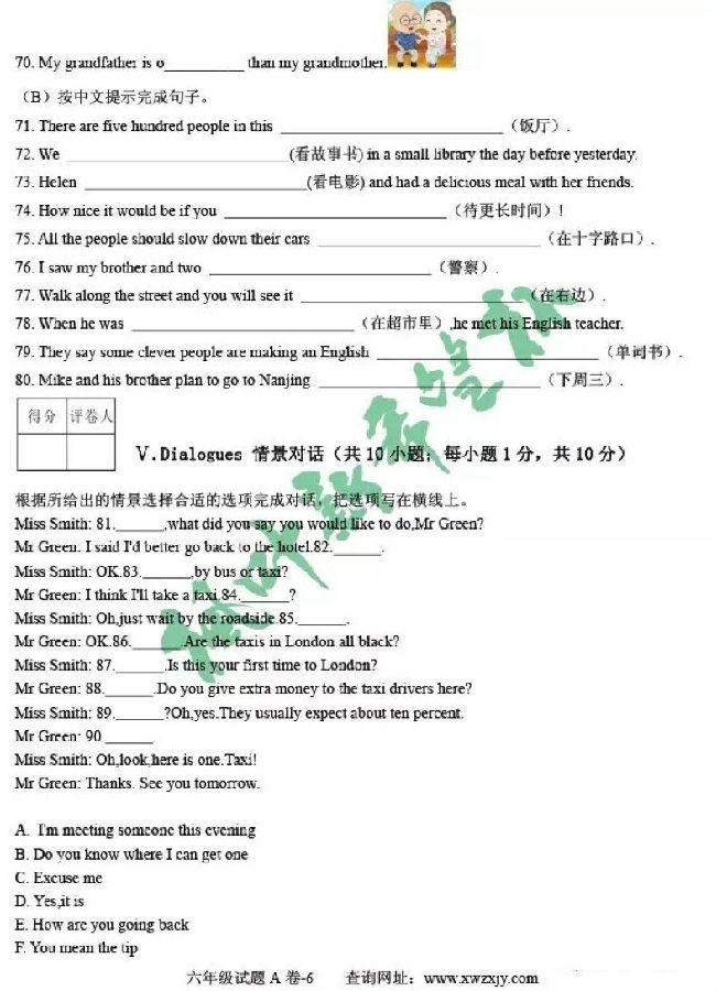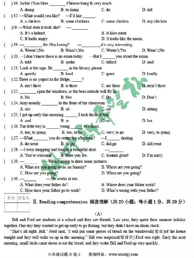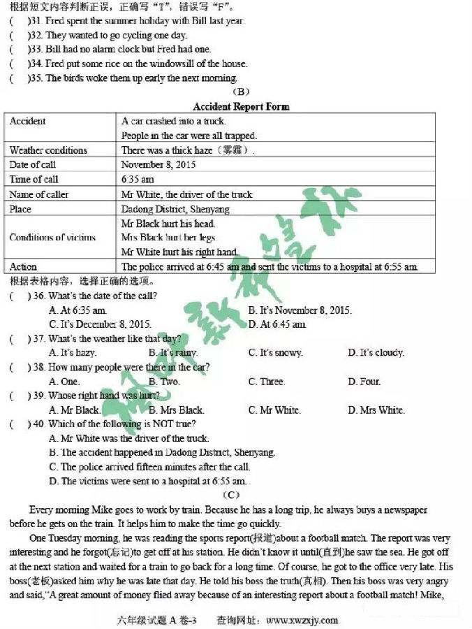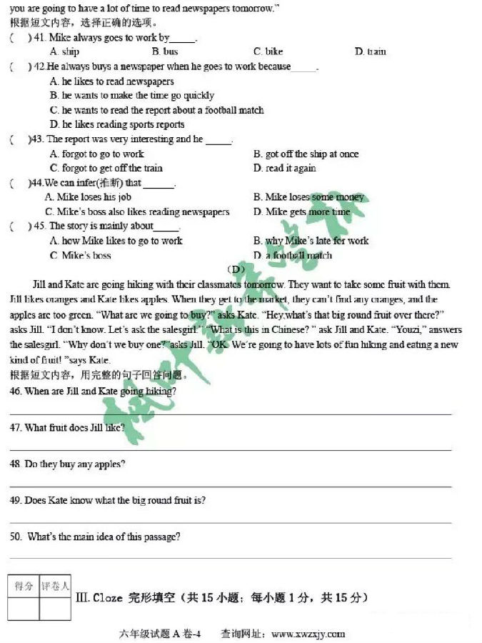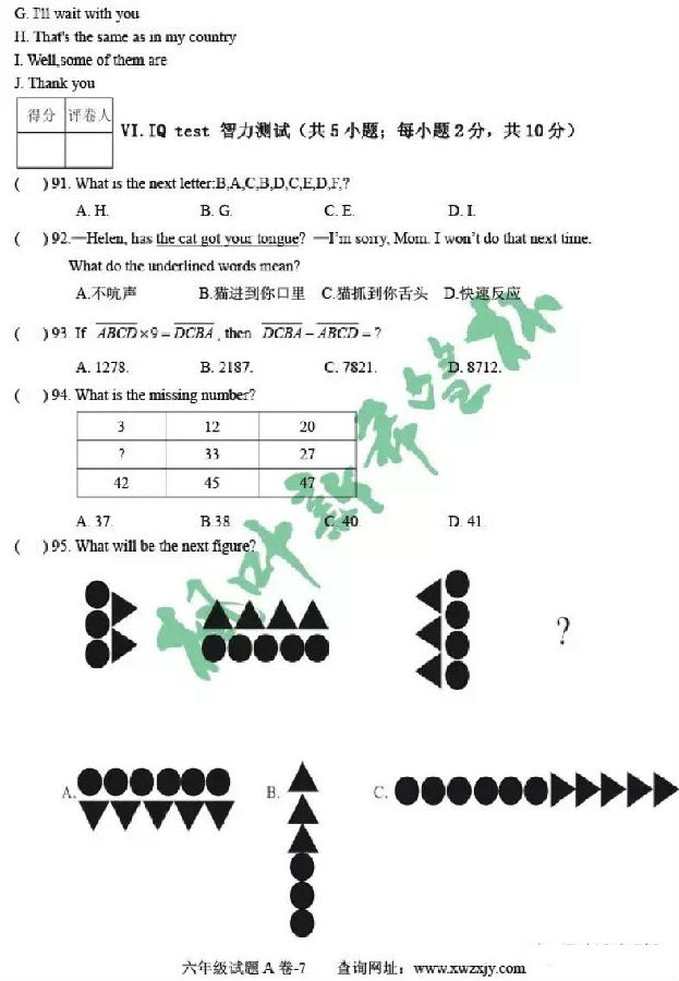 2017年枫叶新希望杯六年级试题及答案