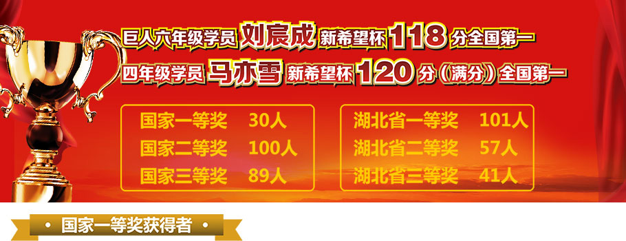 | 谭斯喆 | 四年级 | 鲁巷小学 | 何诚浩 | 四年级 | 水果湖一小 |