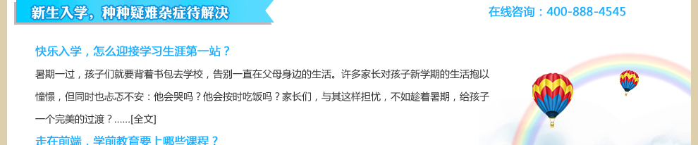 | 艺术 | 2012艺术兴趣宝典 | 包含音乐小世界、美术小世界、舞蹈课程。在音乐课上可学习到简单的乐理知识、掌握领唱、衬腔、表演唱、对唱等合唱形式,学习72首歌曲,34个音乐游戏,78个打击乐曲以及舞蹈基本功的训练,完成至少6个儿童成品舞。>>查看详情 | 在线咨询>> |