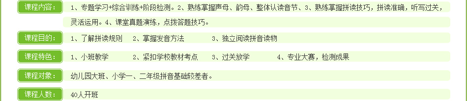 一年级拼音基础班 一年级拼音强化班 一年级拼音精品班 |