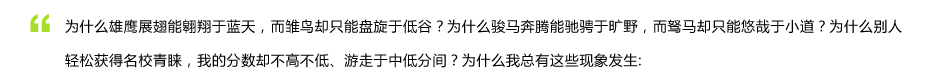 成绩似水中的美人鱼,起早贪黑、周五晚九、强睁着眼学习,可是成绩却在同一水面游来游去,始终不见上涨。
