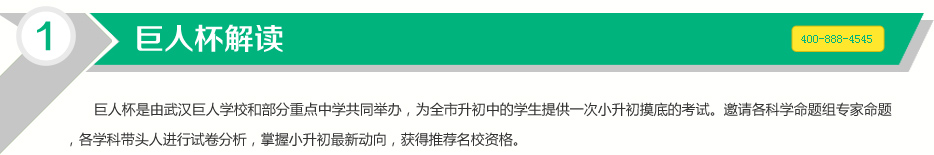 九层之台,起于垒土,名校之行,始于巨人!小升初名校争夺战势在必行,家长们已如热锅上的蚂蚁,四处寻觅名校之路。武汉巨人给大家提供了一场通往名校之路的竞赛:测试权威、定位精准,还有大型公益讲座、重点名初推荐资格等着你!