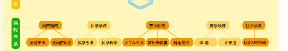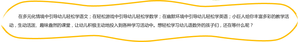 数学主体课选择幼儿生活紧密联系的主题活动,由浅至深,由具体到抽象,重点进行运算、图形和逻辑思维的学习,内容涵盖了幼儿数学大纲,并融入华数、奥数精华。而超级心算教授100以内的直加直减,进退位运算,100多个智力应用题,96个数图形练习,发展儿童思维的深刻性和灵活性。科学课则帮助孩子认识身边的自然环境中的常见事物,以"做中学,做中玩"为宗旨,让孩子动手操作,发现问题,分析问题、解决问题,从而对科学产生兴趣。