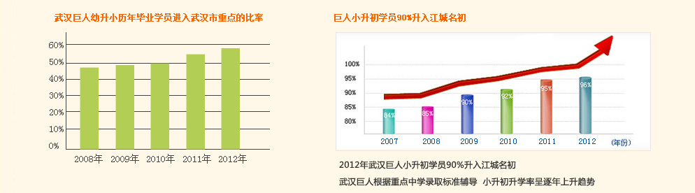 2012年小升初成绩揭晓,巨人学子独冠江城。1181名"巨人杯"测评优秀考生被九大名初录取,占九大名初招生总名额的18%。 查看详情>>
