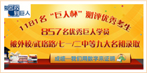 2012年小升初成绩揭晓,巨人学子独冠江城。1181名"巨人杯"测评优秀考生被九大名初录取,占九大名初招生总名额的18%。 查看详情>>