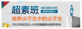巨人针对于小升初的学生推出了一种新的班型——巨人超素班,超素班着重培养尖子生中的尖子生。2012年武汉巨人小升初超素班全部学员均考入武珞路中学,"超素班"使得升名校如愿,"早培人才"是我们的根本目标!"