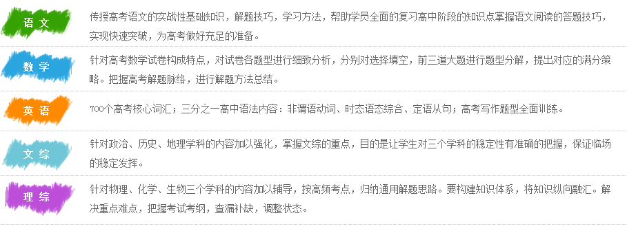针对参加理综考试的艺考生,对物理、化学、生物学科的知识难点建立体系,抓住重点,突破难点。对于这三科,高考考察是以各个细微的知识点为基础的。所以在第一轮复习中要构建知识体系,将知识纵向融汇。在第二轮复习中,解决重点难点,把握考试考纲,最后在第三轮复习中,查漏补缺,调整状态。 |
