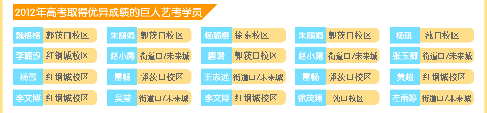 对于艺考的政治、历史、地理学科加以辅导,方法记忆政治历史的重难点,将地理的难点加以整合,掌握各科的要点。摒弃死记硬背的方法,方法记忆。将知识应用到解题过程中,顺利通过艺考。 |